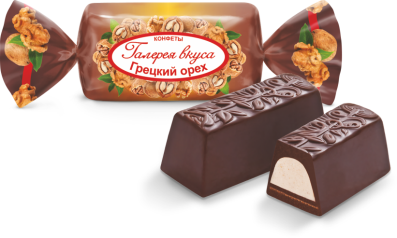 Грек жаңғағымен хош иістендірілген нәзік пралин салындысы бар шоколадты кәмпит.