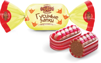Карамель массасымен қабатталған, қызыл жолақты және шоколадты-жаңғақты салмасы бар созылмалы карамель.