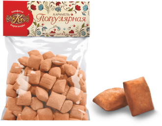Какао ұнтағы себілген, нәзік сүтті салмасы бар жастықша тәрізді карамель.