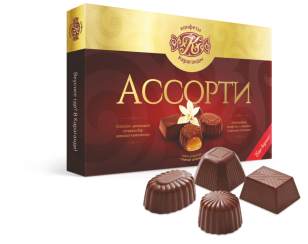 Набор конфет из темного шоколада с помадно-сливочной начинкой.